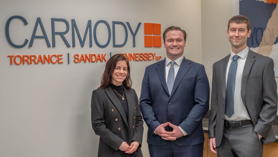 Carmody Torrance Sandak & Hennessey LLP is pleased to announce that three new lawyers have joined the firm’s Litigation practice. Danielle M. Palmieri, Ethan P. Suraci, and Alexander O. (pictured left to right) have joined the firm in either New Haven or Waterbury.
